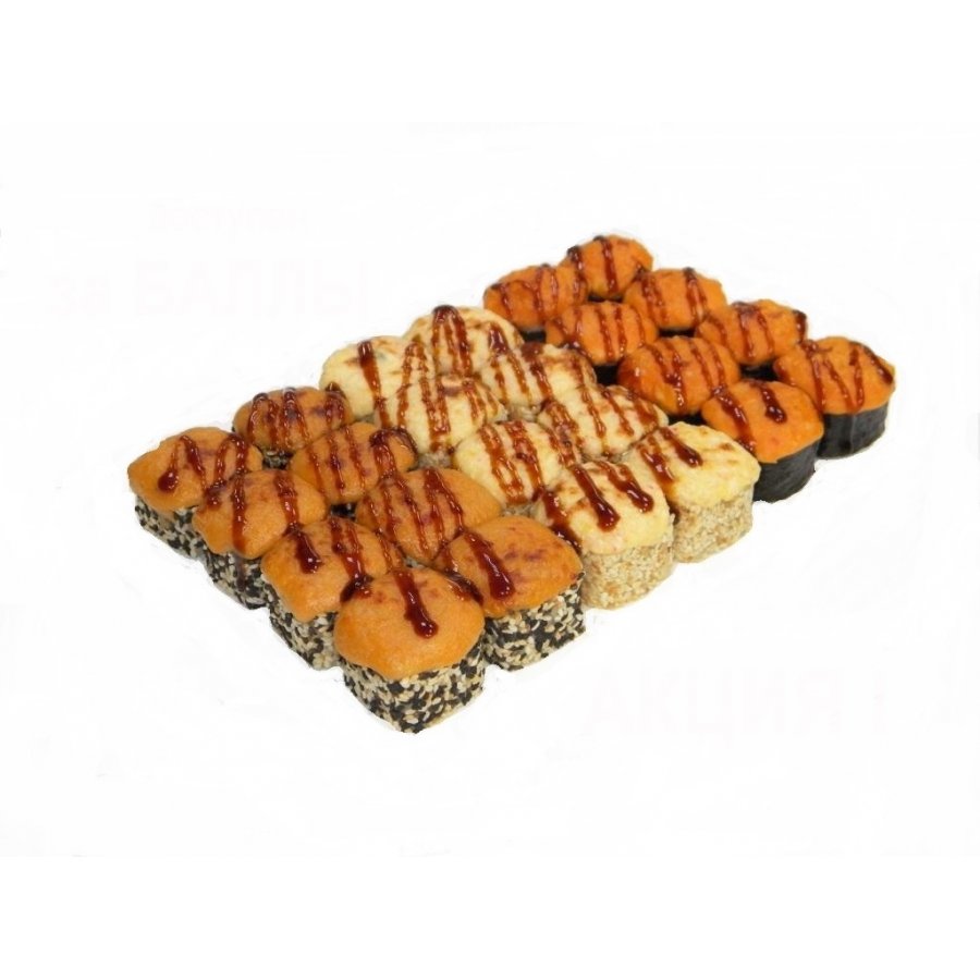 Запечённые роллы с жареным лососем, куриным филе, крабовым мясом и сливочным сыром. Роллы запекаются под нежной сырной шапочкой. В сет не входит: имбирь, васаби, соевый соус. В сет не входит: имбирь, васаби, соевый соус